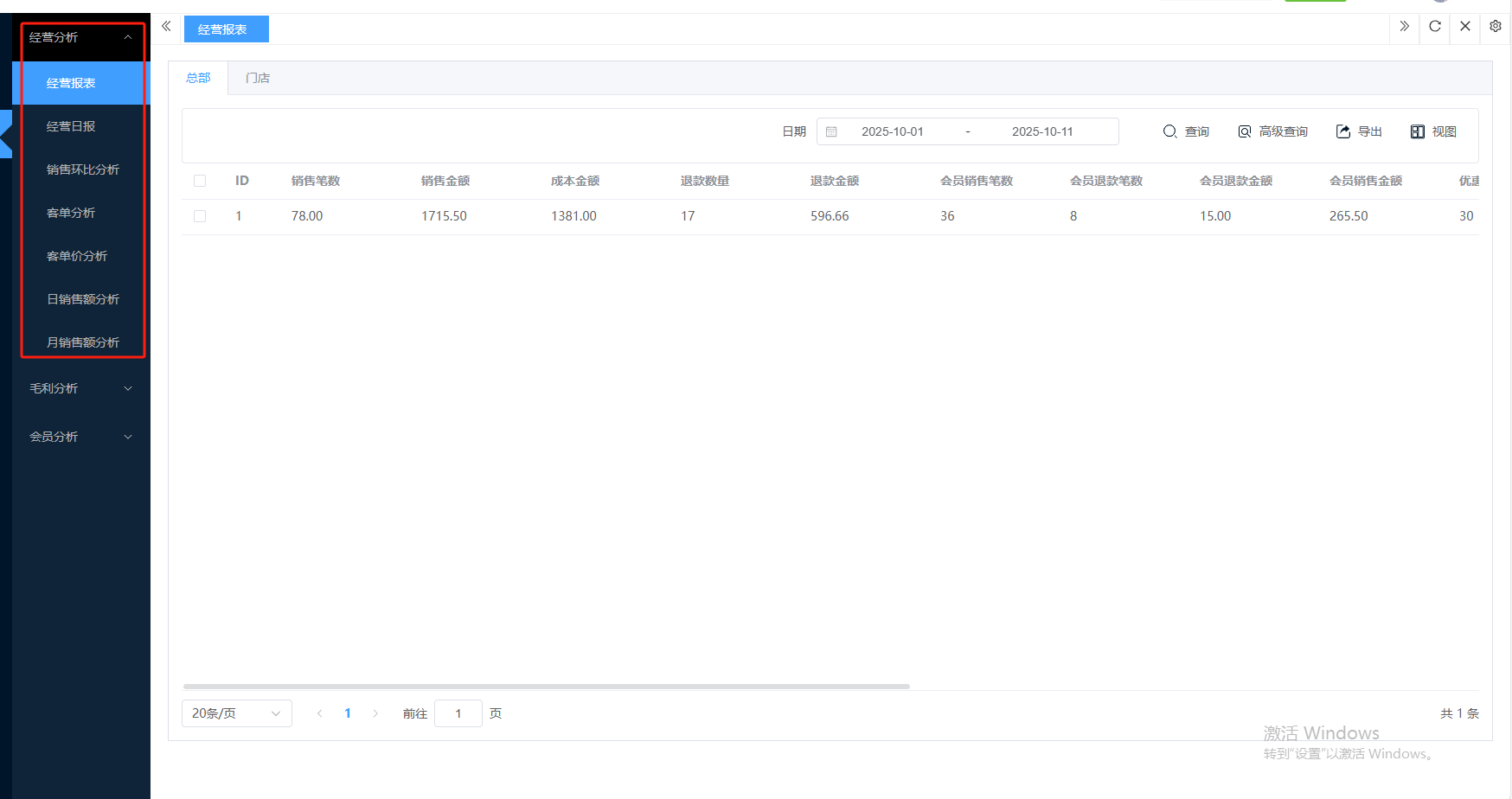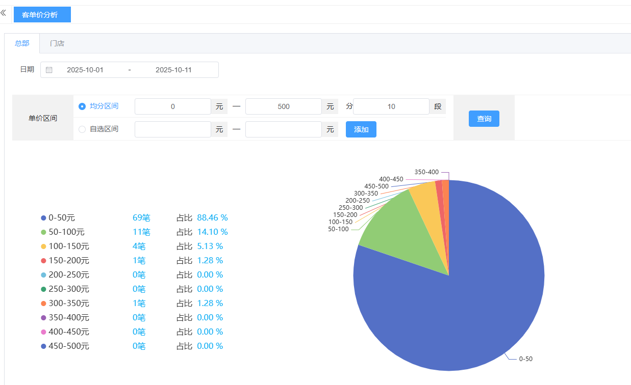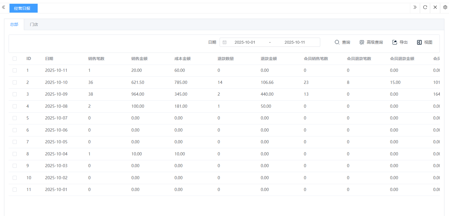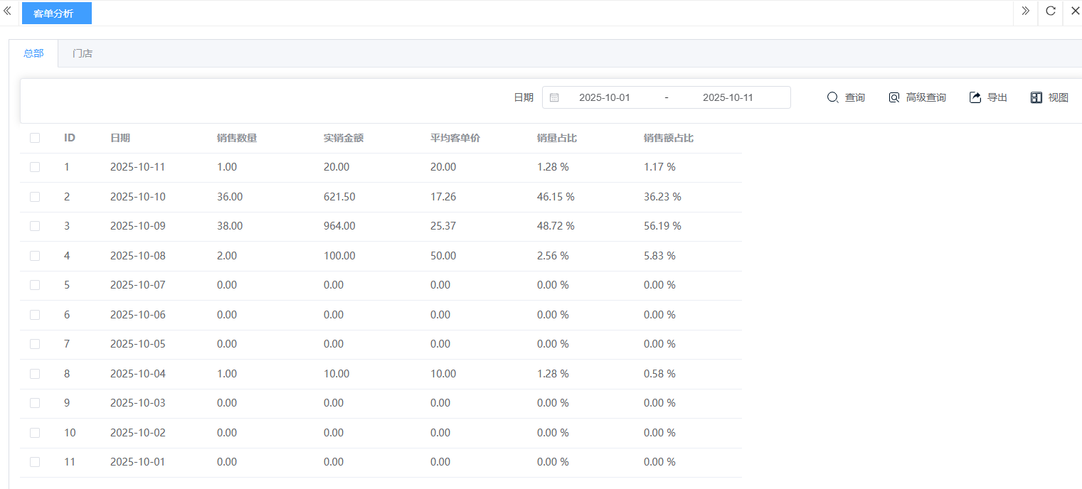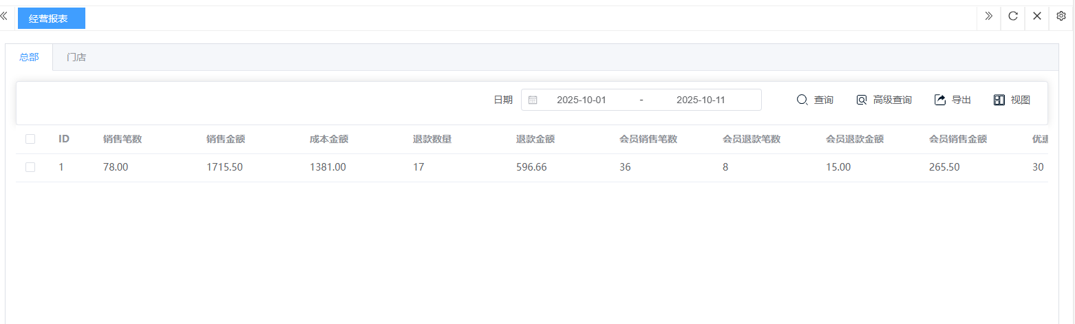 ## **经营分析** 经营分析是利用收银系统及其他数据,系统性地评估生意整体的健康状况、诊断核心问题、发现增长机会,并指导未来资源分配与战略方向的全过程。包含:经营报表、经营日报、销售环比分析、客单分析、客单价分析、日销售额分析、月销售额分析。 如图所示  1、经营报表是一套系统化、结构化的数据报告体系,基于在一定时期内的数据,通过归类、整理和计算,形成易于理解的格式。查看:销售笔数、销售金额、成本金额、退款数量、退款金额等。 如图所示  2、经营日报是以“天”为周期,浓缩了当日核心经营数据,以固定格式生成的每日总结报告。查看:日期、销售笔数、销售金额、成本金额、退款数量、退款金额等。 如图所示  3、销售环比分析是本期数据与紧相邻的上期数据相比,计算出变化百分比,用以判断业务的短期趋势和波动情况。查看:本期销售额、上期销售额、环比增长、本期毛利等。 如图所示  4、客单分析是以“单次交易”为单元,研究顾客消费能力和消费行为的数据分析方法,其核心目标是找到提升“客单价”和“客单利”的路径。查看:日期、销售数量、实销金额、平均客单价等。 如图所示  5、客单价分析不仅是计算一个平均数,而是深入挖掘该数值背后的构成、分布及影响因素,并以此为核心制定提升策略的完整过程。包含:均分区间、自选区间。 如图所示  6、日销售额分析是通过追踪、对比和解读每日销售数据,洞察生意波动规律、及时发现异常、并快速制定应对策略的日常管理循环。可选择:销售额、订单笔数、退款额、退款笔数、促销优惠金额、促销优惠笔数。 如图所示  7、月销售额分析是通过对整月销售数据的系统性复盘,评估月度经营成果、识别长期趋势、发现结构性问题和制定下月战略目标的决策过程。可选择:销售额、订单笔数、退款额、退款笔数、促销优惠金额、促销优惠笔数。 如图所示