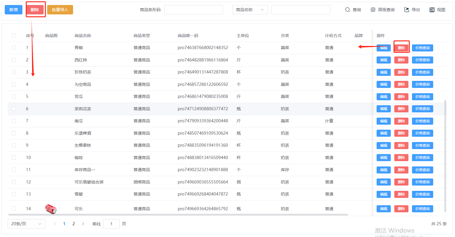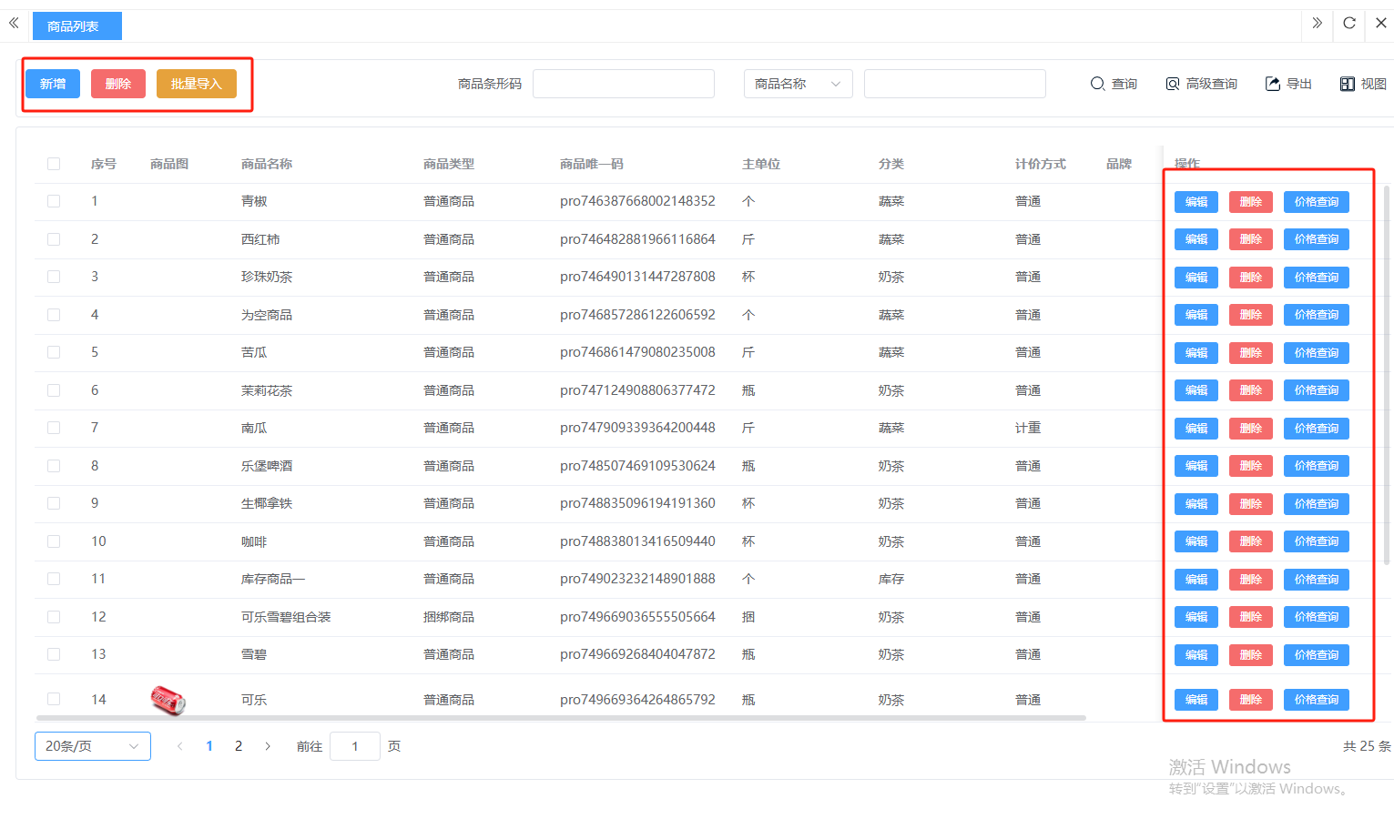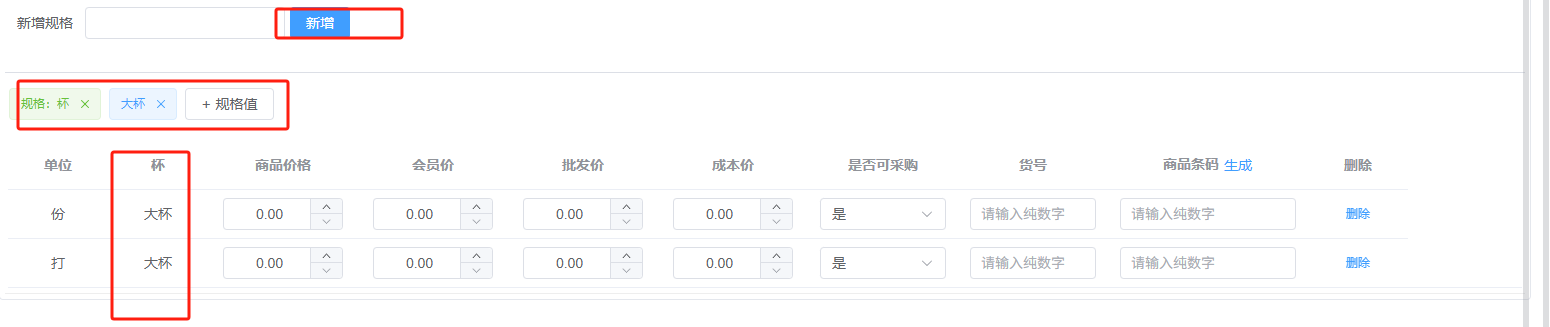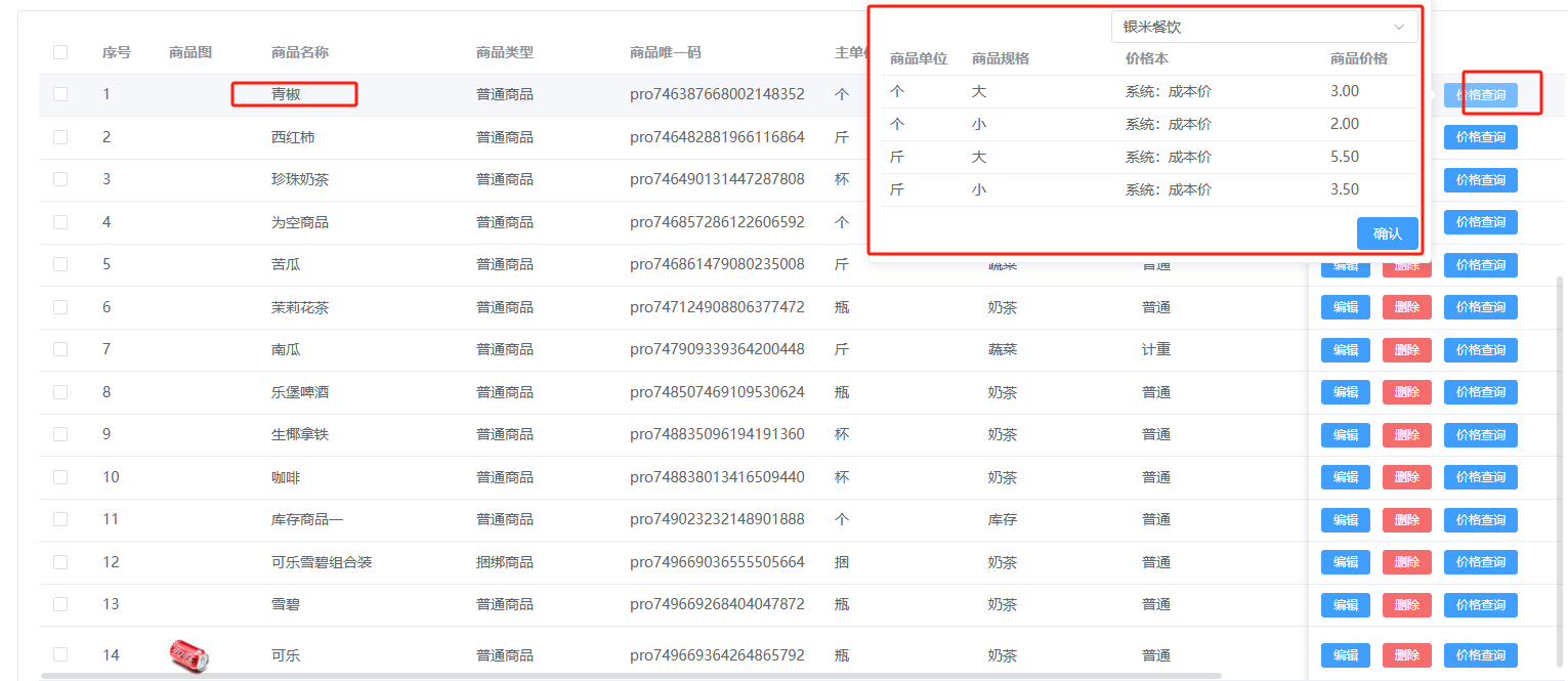 ## 商品资料 商品资料是描述一个商品所有属性的数据集合,它是构建商品档案的基石,其准确性和完整性直接决定了商品档案的价值和整个信息系统的可靠性。包含:商品列表、联营/租赁商品。 如图所示  一、商品列表是系统中所有商品档案以清单形式的可视化展示,它是用户(如收银员、店员、管理者)进行商品搜索、查询、选择和管理的主要操作界面。展示包含:商品图、商品名称、商品类型、商品唯一码等。功能包含:编辑、删除,价格查询、新增、批量导入。 如图所示  1、点击”编辑“进入商品详情页面,包含:基础信息、品项规格、标签库存、品项描述。无需修改点击”返回列表“,如需修改,修改后点击”保存“即修改生效。(详见商品新增) 如图所示  2、点击”删除“,右侧为”行删除“,左上角为”列删除“。如图所示  3、价格查询是通过系统快速、准确地获取商品当前售价及相关价格信息。点击”价格查询“即可显示该商品的单位、规格、价格本、价格。查询完点击”确认“即可返回。 如图所示  4、商品新增是为新商品在系统中建立唯一数字身份的过程,它是该商品进入采购、库存、销售和财务分析等所有业务流程的起点。点击”新增“即可进行商品新增页面。 如图所示  A、基础信息是系统初始化时录入的、相对静态的核心参数和数据,它定义了企业的运营框架和规则,是所有业务流(进、销、存、财)能够顺畅、准确运转的前提。按要求需要录入”商品名称“、”拼音码“。如图所示  选择”商品分类“,选择好后点击”确认“即可。(具体类型详见”商品分类“)如图所示  选择”商品分类“,选择好后点击”确认“即可。(具体类型详见”商品组合“)。如图所示  选择”计价方式“。普通(正常商品)、计重(称重商品)、计数(以某重量为单位的商品)。如图所示  选择”是否启用“(是否禁用商品)、不计库存(商品销售不扣除库存)、自助下单(商品可在用户客户端自己下单)、销售成品(是否最终销售商品)、收银隐藏(收银员看不见商品)、固价商品(商品固定价格,不参与会员活动等折扣)、会员折扣(开启时应用会员折扣价格,关闭应用会员价)。  选择“主单位”(商品单价计量单位,商品最小单位),点击“增加单位”可设置其他单位。如图所示  选择单位,点击“新增”即可新增单位,输入单位名称,点击确认即可。如图所示  选择“员工提成”,不提成、固定金额(按固定金额)、售价比(按销售金额)、利率比(按利润金额)、员工提成比率X销售价、员工提成比率X利润。如图所示 选择图片,点击"+",导入图片即可。如图所示  B、品项规格是商品可供销售的最小单元的具体描述,它明确了商品的计量单位、包装含量和销售方式,是商品在系统中被识别和管理的基准。录入商品价格、会员价、批发价、成本价、是否可采购、货号、商品条码(点击生成为随机生成条码)、删除。**注意:称重商品货号必须为5位唯一数字,不填写或者填写错误,系统自动生成货号(建议留空由系统生成)。** 如图所示  点击”新增"/第一步:新增规格,例:新增规格【型号】第二步:在规格上,新增规格值,例:在【型号】规则后面点击【+规格值】,新增【大杯】、【中杯】第三步:在生成的规格列表中,更改规格内容。如图所示  C、标签库存是指对每一批具有相同特定属性(如生产日期、批次号、保质期)的商品进行独立标识和追踪的库存管理方式,其核心是实现库存的“批次化”或“序列化”管理。如图所示  选择“商品口味”,点击确定即可生效。(详见“商品口味”)。如图所示  选择“商品品牌”,点击“新增”即可增加新品牌。如图所示  选择“商品标签”,点击确定即可生效。(详见“商品标签”)。如图所示  设置库存下限、库存上限、保质期、预警天数(为0时系统将不自动预警)。如图所示  选择报损价格,包含:进货价、销售价。  D、品项描述是用以详细说明商品特性、功能、材质、用途及卖点的文本信息,其核心目标是促成购买决策、减少信息不对称,并提升购物体验。 如图所示  5、批量导入是通过下载标准模板、填写数据文件,并一次性上传至系统,从而快速完成大量数据初始化和更新的方法,其核心价值是“化繁为简,极大提升效率”。点击“批量导入”,点击“上传导入文件”即可。 如图所示  二、联营/租赁商品是指商品所有权属于供应商(或品牌方),商户仅提供场地进行销售并按约定比例抽取佣金的商品。其核心特征是“商户不拥有商品所有权,不承担库存风险”。包含:联营是一种商户(如商场)提供经营场地和管理服务,品牌商提供商品并负责销售,双方按照约定的比例对销售额进行分成的合作模式;租赁是指商户(出租方)将特定的场地、空间、设备或系统的使用权,在一定时期内有偿地授予承租方使用,并收取固定租金的合作模式,其核心是“使用权与所有权的分离”。展示包含:商品图、商品名称、商品唯一码等。功能包含:编辑、删除,新增、选择门店。 如图所示  1、点击”编辑“进入商品详情页面,包含:门店、选择商品、商品模式。修改后点击”保存“即修改生效。(详见新增)。如图所示  2、点击”删除“,右侧为”行删除“,左上角为”列删除“。如图所示  3、、点击”新增“即可进行商品新增页面。新增后点击”保存“即新增生效。如图所示  选择商品