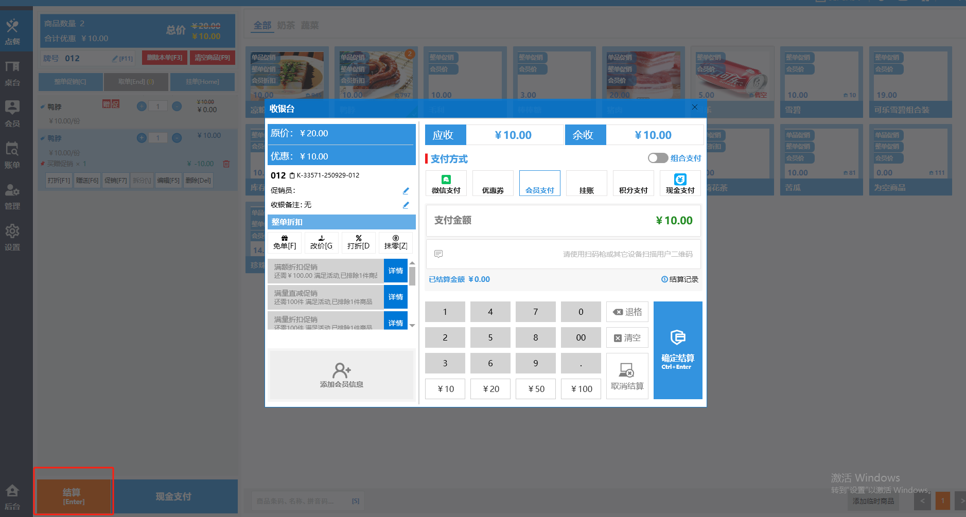收银界面(餐饮版)