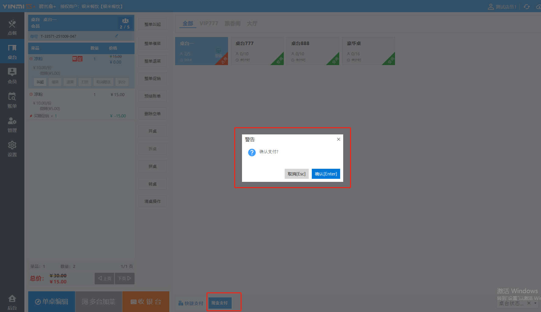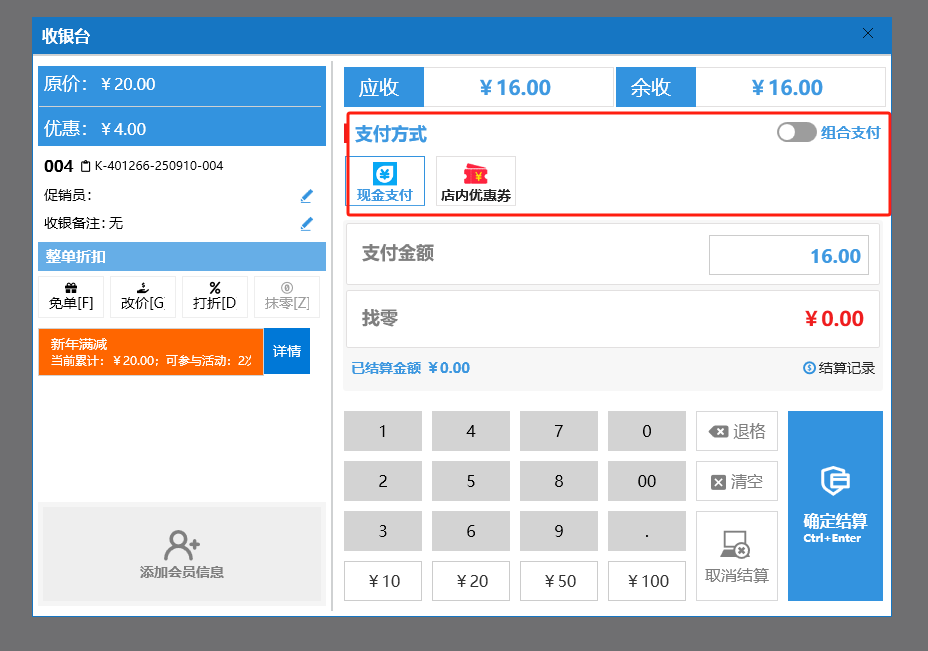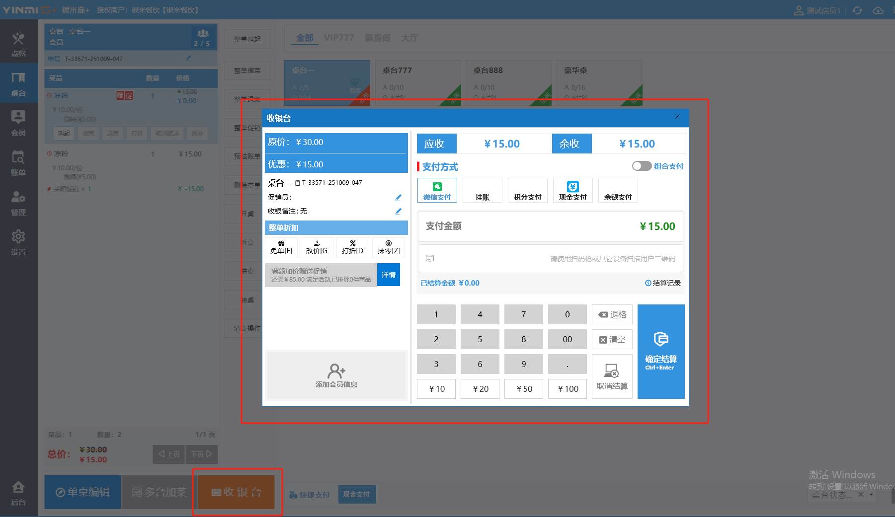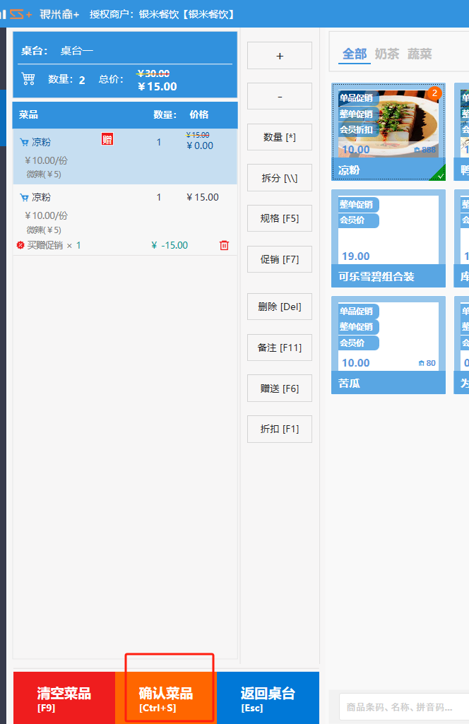 收银界面(餐饮版)