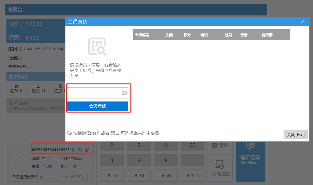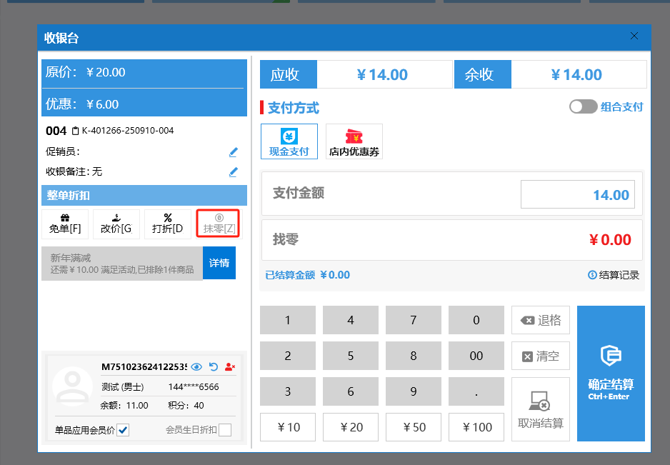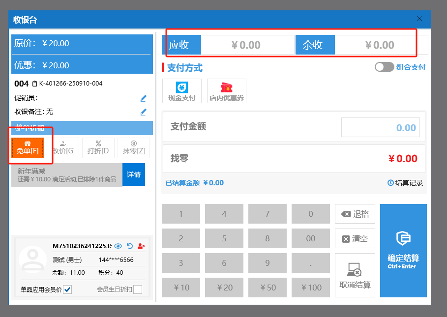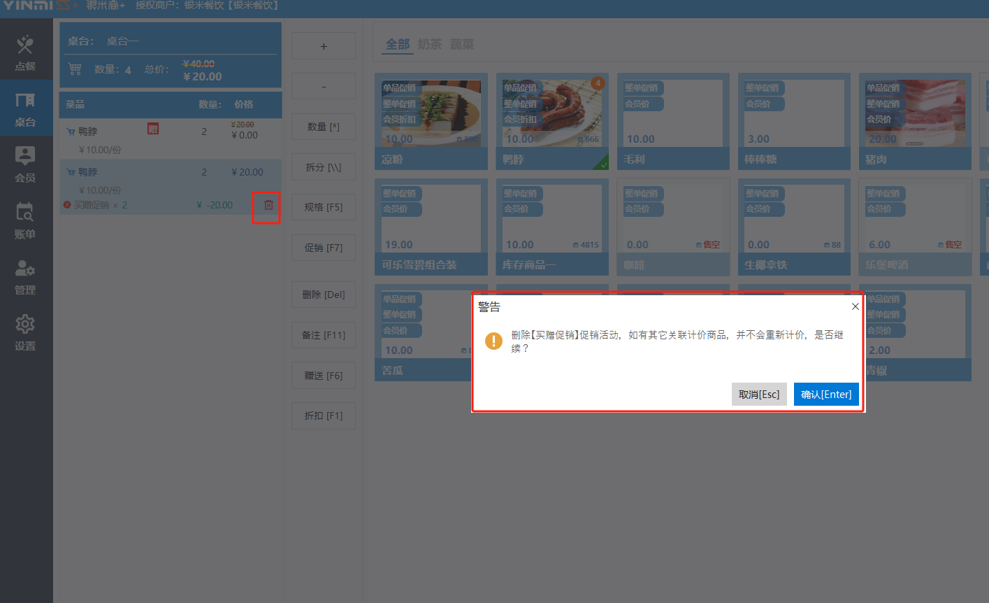 收银界面(餐饮版)